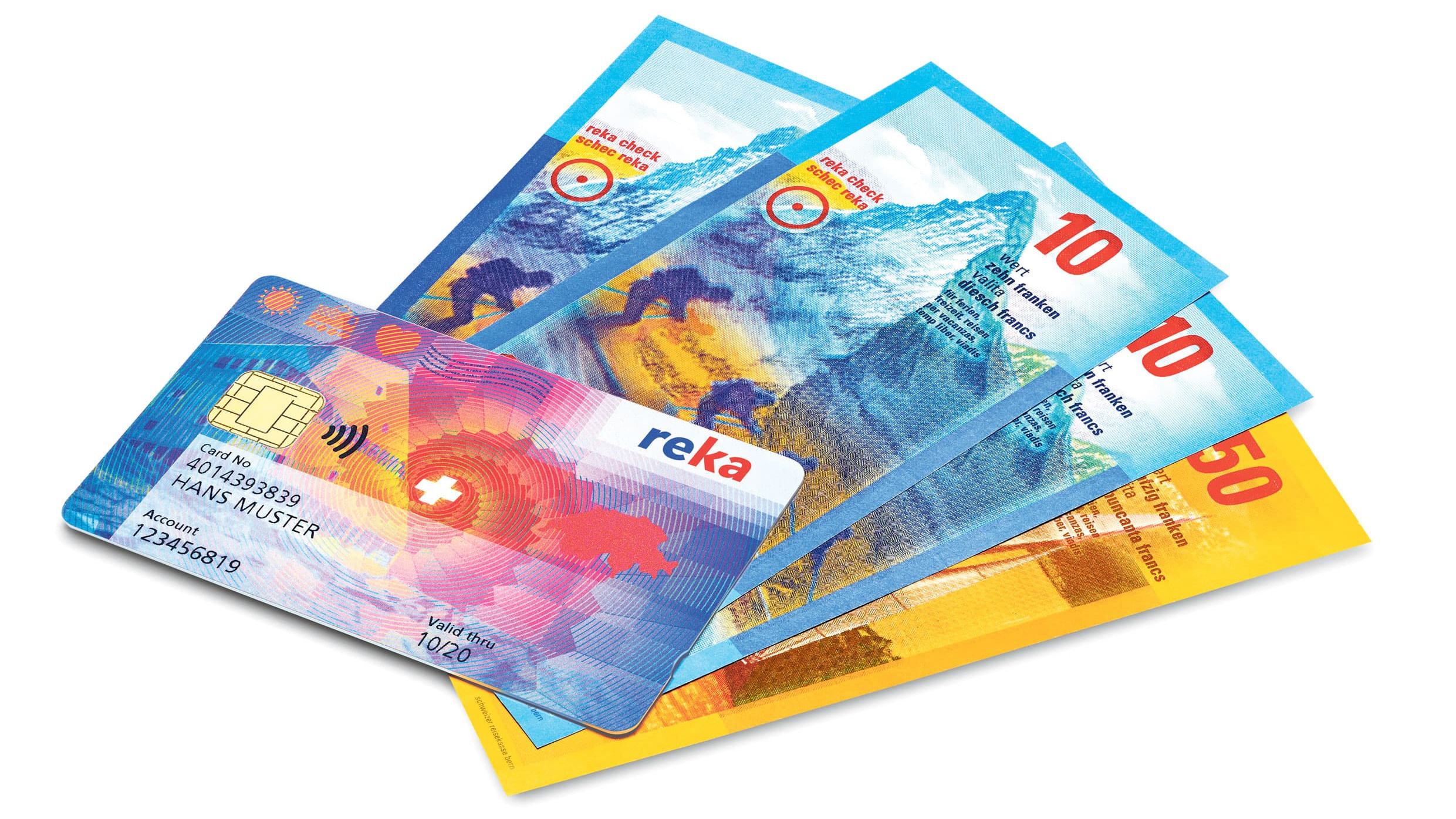 La Reka-Card peut être chargée avec diverses formes d’argent Reka. Reka-Pay (anciennement les chèques Reka) dédié aux vacances et aux loisirs, Reka-Lunch pour la restauration du personnel, et Reka-Rail+ pour une mobilité respectueuse du climat.